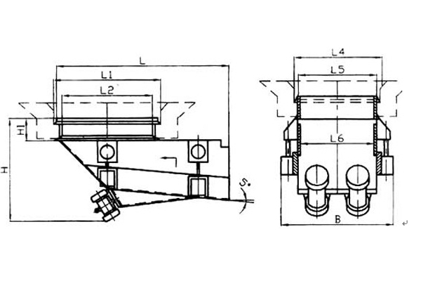 慣性振動給煤機由機架、底板(給煤槽)、傳動平臺、漏斗、閘門、托輥等組成。當電機開動后經(jīng)彈性聯(lián)軸器、減速機、曲柄連桿機構(gòu)拖動傾料5°的底板在輥上作直線往復運動,煤均勻地卸到其他設備上。