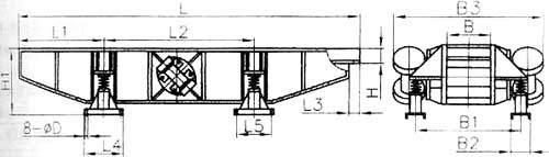 慣性振動(dòng)輸送機(jī)料槽使用橡膠彈簧或鋼簧支承,依靠固定在料槽上的兩臺振動(dòng)電機(jī)的自同步運(yùn)轉(zhuǎn),使料槽產(chǎn)生直線振動(dòng)。慣性振動(dòng)輸送機(jī)可制成上振式、下振式和側(cè)振式三種形式。